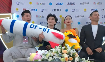 "Grand Prix" daiļslidotāji demonstrē Ķīnas militāro varenību