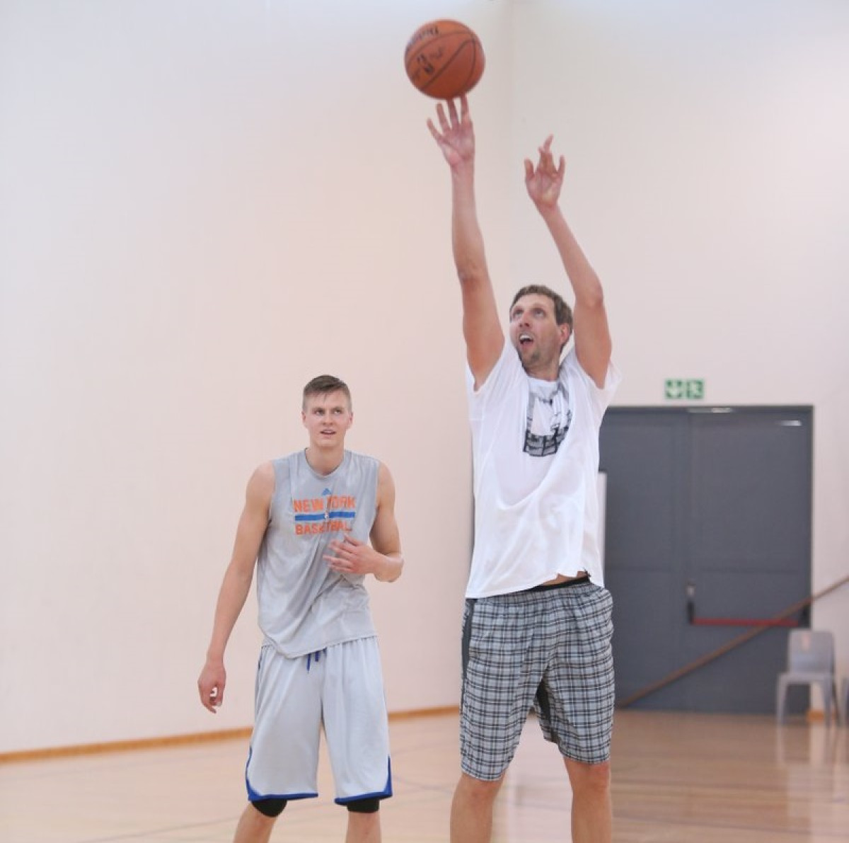 Dirk Nowitzki & Kristaps Porzingis swishing from downtown during a Johannesburg workout. #NBAAfricaGame 🇿🇦 pic.twitter.com/FBjFpmg5hp— NBA (@NBA) August 3, 2017