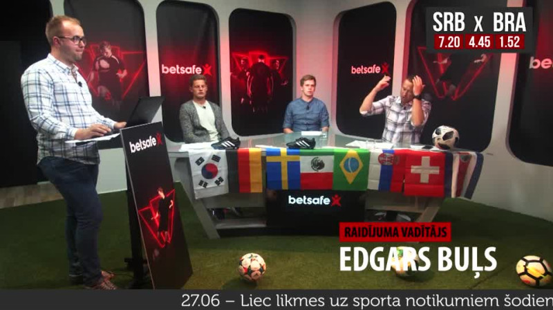 Raidījuma "Gols! Uj, Štanga" studijā kopā vadītāju Edgaru Buļu un Rūdolfu Kugrēnu, komiķi un futbola entuziastu, šoreiz savu viedokli piedāvāja Kaspars Dubra, Latvijas izlases aizsargs, kurš šobrīd pārstāv Virslīgas komandu RFS, bet leģionāra gaitās savulaik spēlējis arī UEFA Čempionu līgas grupu turnīrā. Šoreiz uzmanība tika pievērsta E un F grupas spēlēm, vērtējot favorītu Brazīlijas un Vācijas iespējas (abas izlases, lai arī ir labās pozīcijās, vēl nav garantējušas tikšanu ārā no grupas), kā arī par to iespējām uzvarēt grupā. Materiālu piedāvā Vinnē kopā ar Betsafe - sporta totalizators,...