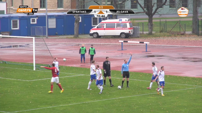 SMSCredit.lv futbola Virslīgas 25. kārtas spēlē ''Jelgava'' aizraujošā spēlē Slokas stadionā ar 3:1 pārspēja Jūrmalas ''Spartaku''. Pēc mača komentāru sniedza Jurijs Popkovs un Sergejs Golubevs.
