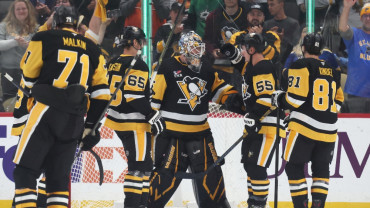 Pitsburgas "Penguins" spēlē līdzjutējs nogāžas no augšējā stāva