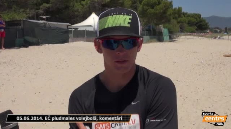 Trešo uzvaru trīs spēlēs A apakšgrupā izcīnīja Eiropas čempionātā ar pirmo numuru izliktais pāris no Latvijas - Jānis Smēdiņš/Aleksandrs Samoilovs. Tāpat kā vakar pret Čehijas pāri, vienu setu mūsu duets zaudēja arī pret vāciešiem Fuchs/Flüggen, izcīnot panākumu tikai trešajā setā. Par aizvadīto grupu turnīru un koncentrēšanos izslēgšanas spēlēm pastāstīja Jānis Smēdiņš.