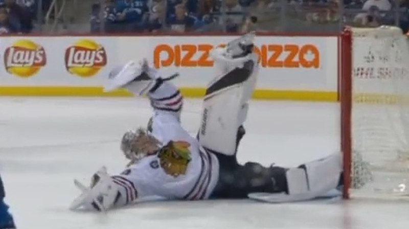 Video: NHL atvairījumu topā uzvar "Blackhawks" vārtsargs