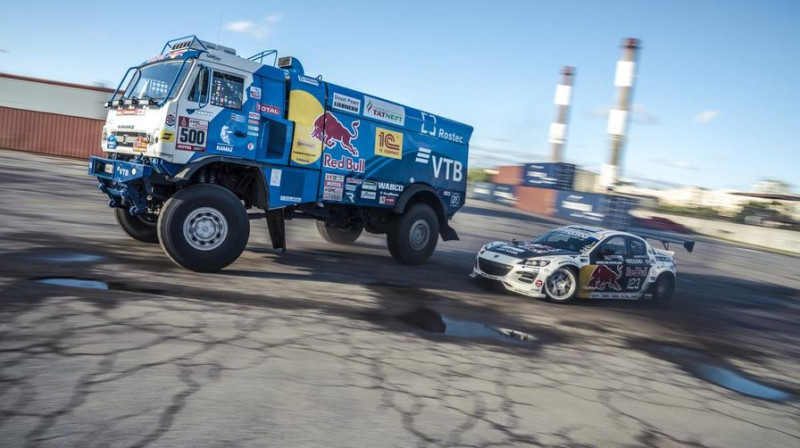 Sanktpēterburgā uzņema īsfilma, kur redzams, kā drifts padodas deviņas tonnas smagajai Dakaras rallijam paredzētai "Kamaz" automašīnai, kas turklāt to paveica tandēmā ar sacīkšu "Mazda" spēkratu. Pie "kamaza" stūres sēdās Eduards Nikolajevs, savukārt "mazdu" pilotēja Maikls Vaidets jeb "Trakais Maiks", kā viņu pazīst sacīkšu trasēs. Video avots: https://www.youtube.com/watch?v=D0n...