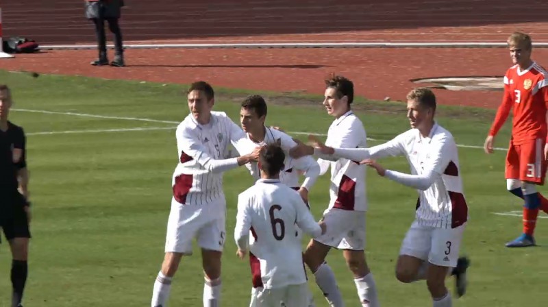 U17 futbolisti ar skaistiem vārtiem izrauj neizšķirtu pret Krieviju