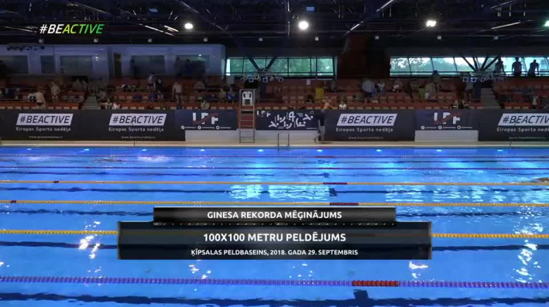 Ginesa rekorda mēģinājums 100x100 metru peldējumā. Pilns ieraksts