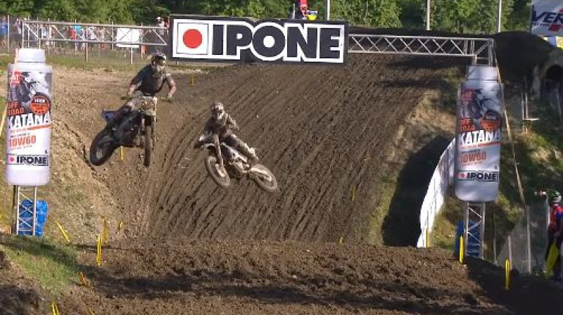 Pasaules motokrosa čempionāta Krievijas posma kvalifikācijā šodien uzvaru guva Pauls Jonass, kurš vadībā izrāvās jau startā un noturēja aiz muguras "KTM" komandas biedru Horhi Prado. MXGP klasē uzvarēja Džefrijs Herlingss. Video avots: https://www.youtube.com/watch?v=Tug...