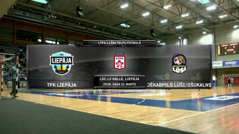 11. martā Liepājā norisinājās LTFA "Optibet" telpu futbola 1. līgas pusfināla 1. spēle starp TFK "Liepāja" un "Jēkabpils Lūši/Ošakalns" komandām. Viesi parādīja spīdošu sniegumu pirmajā puslaikā, gūstot astoņus(!) bezatbildes vārtus, un faktiski nodrošinot sev uzvaru. Otrajā puslaikā liepājnieki atguvās, un pat uzvarēja šajā periodā, tomēr kopumā atspēlēšanās bija neiespējama misija, un jēkabpilieši tādejādi izcīnīja uzvaru ar rezultātu 11:4 (8:0; 3:4). Uzvarētāju sastāvā "hat-trick" Aigaram Liņģim, kamēr pa diviem vārtiem guva Aleksandrs Abašins, Maksims Potlovs un Aleksandrs Gospodarjovs.