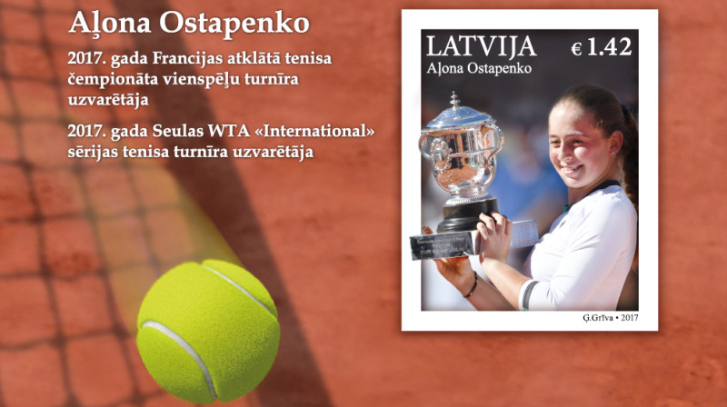 Sadarbībā ar Latvijas slavenāko tenisisti un Latvijas Tenisa savienību Latvijas Pasts izdevis Aļonai Ostapenko veltītu pastmarkas bloku. Jaunās pastmarkas pirmās dienas zīmogošana paredzēta 2017.gada 10.novembrī Rīgas 50.pasta nodaļā t/c Origo, Stacijas laukumā 2, no plkst.8 līdz 19.30.