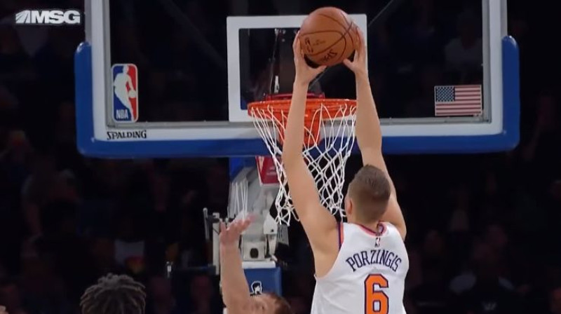 Video: Porziņģis pēc caurgājiena danko un triumfē NBA dienas topā