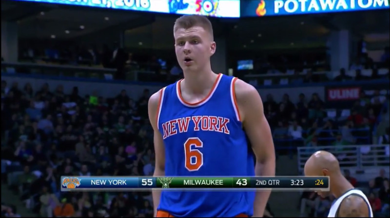 Naktī uz ceturtdienu Kristaps Porziņģis debitēja NBA, palīdzot Ņujorkas "Knicks" ar 122:97 pieveikt Milvoki "Bucks". Porziņģis laukumā pavadīja 24 minūtes, kuru laikā pretinieku grozā sameta 16 punktus (1p. 9/12, 2p. 2/9, 3p. 1/2). Viņš bija otrs rezultatīvākais savā komandā, turklāt savā statistikā ierakstīja arī piecas atlēkušās bumbas (divas uzbrukumā), vienu rezultatīvu piespēli, pa blokam un pārtvertai bumbai.Video: YouTube kanāls FreeDawkins
