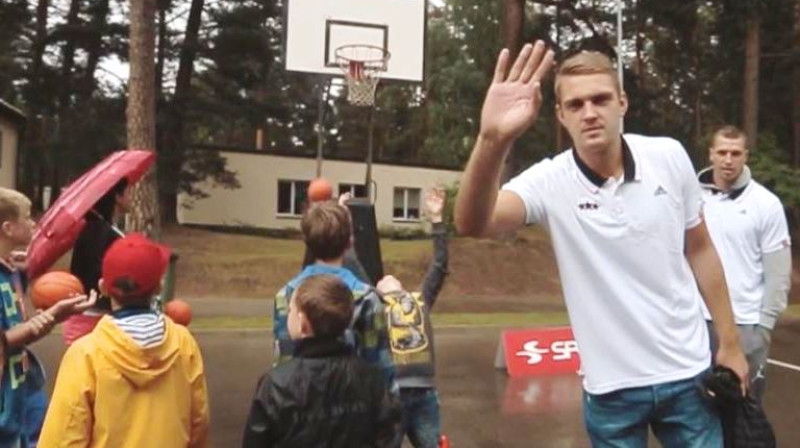 Turpinoties Latvijas Skolu Jaunatnes Dziesmu un Deju svētku mēģinājumiem, šodien jauniešiem Mežaparka lielajā estrādē pievienojās Latvijas vīriešu basketbola izlases kandidāti Andrejs Šeļakovs, Rolands Freimanis un jauniešu izlašu dalībnieks Andrejs Gražulis, kuri kopā ar EuroBasket 2015 oficiālo talismanu Frenkiju palīdzēja skolēniem relaksēties no intensīvā mēģinājuma ar basketbola aktivitātēm. Video: Mārcis Birste.