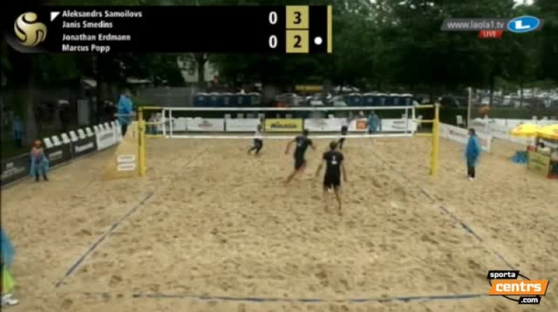 Šveices pilsētas Lucernas "Open" grupu turnīru ar zaudējumu noslēdza Aleksandrs Samoilovs un Jānis Šmēdiņš, kuri B grupā ierindojās trešajā vietā un kvalificējās izslēgšanas spēlēm. Cīņā par otro vietu grupā latvieši ar 1-2 (21:17, 20:22, 12:15) piekāpās vāciešiem Jonatanam Erdmanam un Markusam Popam. Izslēgšanas spēļu 1.kārtā Latvijas duetam pretī stāsies baltkrievi Aleksandrs Kavaļenka un Aleksandrs Dziadko.