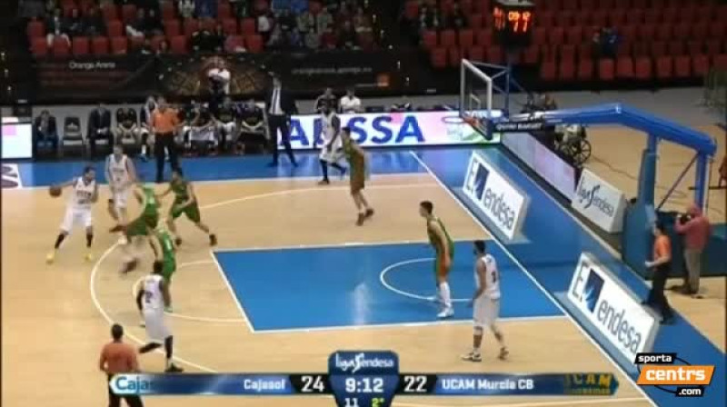 Zaudējumu savā laukumā piedzīvoja Seviļas ''Cajasol'', kas ar 73:93 pārliecinoši piekāpās vienai no ACB līgas pastarītēm ''Murcia''. Kristaps Porziņģis spēlē iesaistījās no rezervistu soliņa un laukumā pabija 19 minūtes, kuru laikā guva piecus punktus (2p. - 2/3, 3p. - 0/1, 1p. - 1/2), ieskaitot putback bumbas triecienu grozā no augšas pēc partnera neprecīza tālmetiena. Spēli talantīgais latvietis noslēdza ar trim atlēkušajām bumbām, vienu kļūdu, trim piezīmēm un diviem efektivitātes koeficienta punktiem.