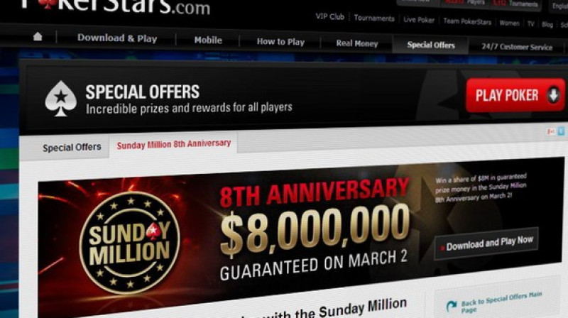 Sunday Million 8. gadu jubilejas turnīra balvu fonds $8 miljoni