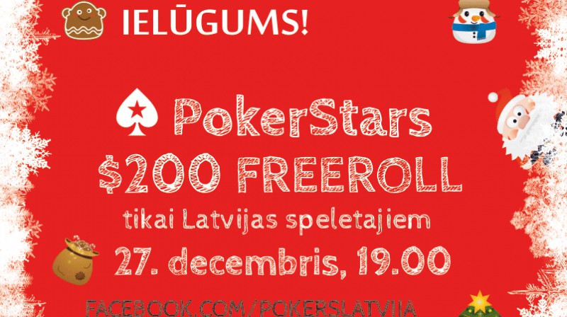 Līdz jaunā 2013. gada sākumam atlikušas vien pāris dienas. Par godu šim notikumam mēs kopā ar Pokerstars vēlamies Jūs uzaicināt šodien, 27. decembrī, pl. 19.00 uz šī gada pēdējo Freeroll (bezmaksas) turnīru, kurā piedalīties varēs TIKAI spēlētāji no Latvijas! Turnīra balvu fonds - $200!