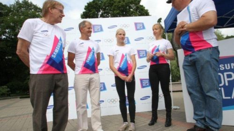 Šodien – tieši vienu mēnesi pirms Londonas olimpiskajām spēlēm – četri Latvijas dalībnieki olimpiskās lāpas stafetē, gatavojoties startam Londonā, veica simbolisku iesildīšanās distanci. Piedaloties Samsung Iedvesmas skrējienā "Hope Relay", lāpas nesēji ziedoja bērniem SOS ciematu audžu ģimenēs.