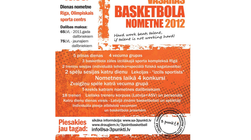 No 11. līdz 15. jūnijam Rīgas Olimpiskajā Sporta centrā (OSC) norisinājās ikgadējā 3 punktu basketbola nometne. Tajā vairāk nekā 120 dalībnieki katru dienu ne tikai izbaudīja basketbolu visdažādākajos veidos, bet arī tikās ar Latvijas labākajiem basketbolistiem, tostarp Jāni Blūmu un Aneti-Jēkabsoni-Žogotu.
