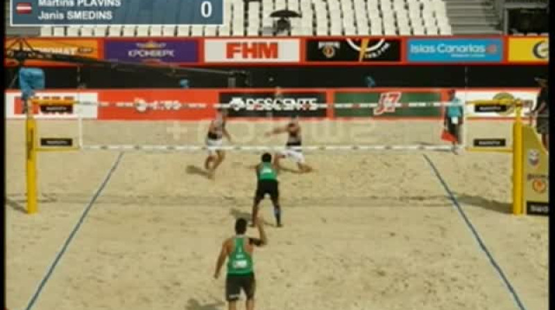 Zaudējumu Maskavā notiekošā FIVB „Grand Slam” turnīra kārtējā spēlē šorīt piedzīvoja Mārtiņš Pļaviņš un Jānis Šmēdiņš, kuri cīņā par iekļūšanu ceturtdaļfinālā bija spiesti atzīt Brazīlijas dueta Bendžamins / Bruno pārākumu divos setos. Līdz ar to turnīru Maskavā latvieši noslēdza 9. vietā.