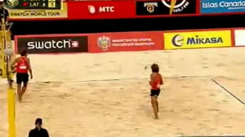Latvijas pludmales volejbola duets Aleksandrs Samoilovs / Ruslans Sorokins šodien ar zaudējumu noslēdza FIVB „Grand Slam” turnīru Maskavā. Latvijas duets piedzīvoja neveiksmi ceturtdaļfinālā, ieņemot dalītu piekto vietu. Ceturtdaļfināla mačā Samoilova un Sorokina pretinieki bija brazīlieši Pedro Kunja un Rikardo Santušs, kuri sacensībās izsēti ar trešo numuru. Lai gan pa ceļam līdz ceturtdaļfinālam mūsējie bija pieveikuši vairākus vadošos pārus, brazīlieši tomēr izrādījās ciets rieksts - Samoilovs/Sorokins 43 minūšu laikā Kunjam un Santušam piekāpās divos setos ar 15:21, 15:21.