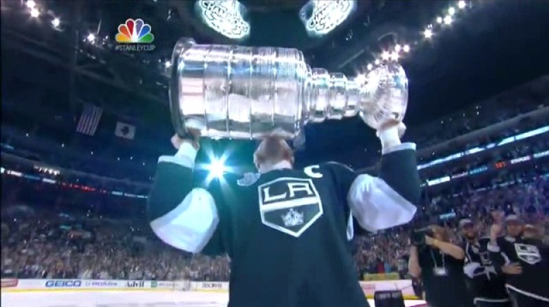 Aizvadītajā naktī par Nacionālās Hokeja līgas (NHL) Stenlija kausa ieguvējiem pirmoreiz kluba vēsturē kļuva Losandželosas "Kings" hokejisti, kas fināla sestajā spēlē ar 6:1 uzvarēja Ņūdžersijas "Devils" un sērijā triumfēja ar 4-2.