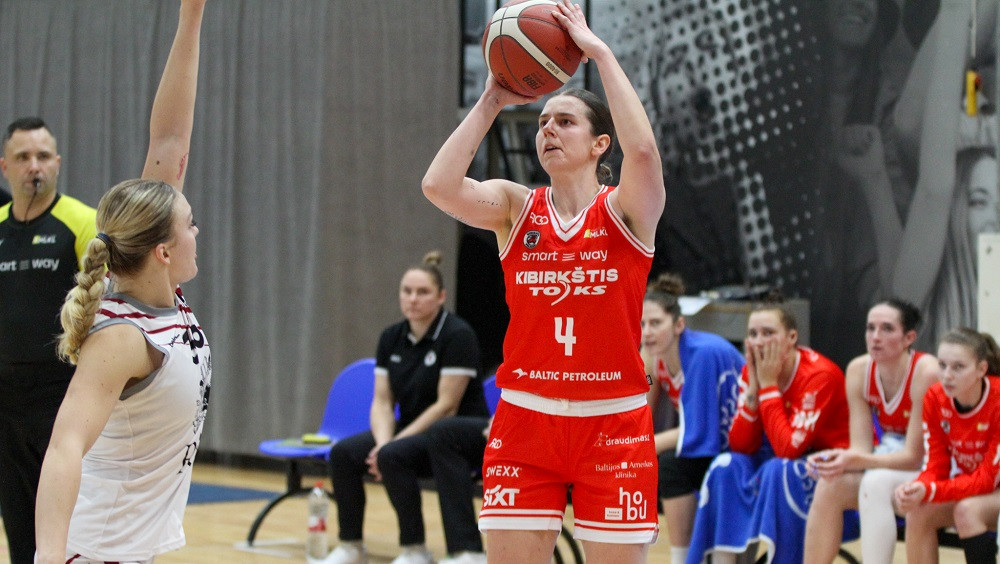 Kibirkštis: Wadoux 26 (2p 4/5, 3p 6/15; eff 19), Ūse 18 (2p 8/10, 1p 2/4; 10ab, eff 26), Labuckiene 15 (2p 2/7, 1p 11/11; eff 25), Dean 14, Aukštikalnīte 14, Miknaite 3, Paunksnīte 3, Galvanauskaite 2, Brown 2, Meškonīte 1, Radič. Treneris Vilius Stanišauskas.