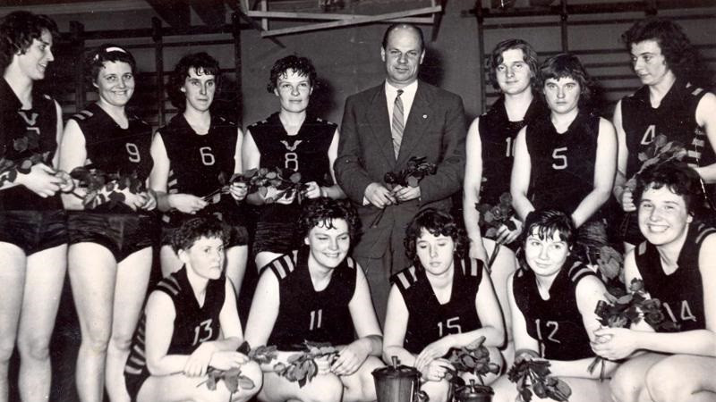 1955. gadā izveidota sporta biedrības “Daugava” sieviešu basketbola meistarkomanda.