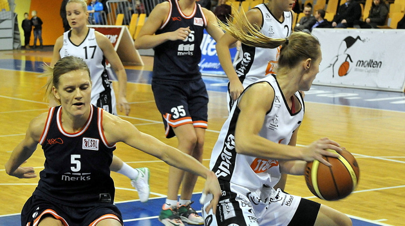 Sporta kluba "Cēsis" basketbolistes pirmajā puslaikā iemeta 60% metienu no spēles un sagrāva Igaunijas kausa ieguvējas "1182 Tallinn" ar rezultātu 75:44. Latvijas-Igaunijas līgas finālā trīskārtējās Latvijas čempiones spēlēs pret "TTT Rīga" un Tallinas Universitātes dueļa uzvarētājām.Foto: Romualds Vambuts