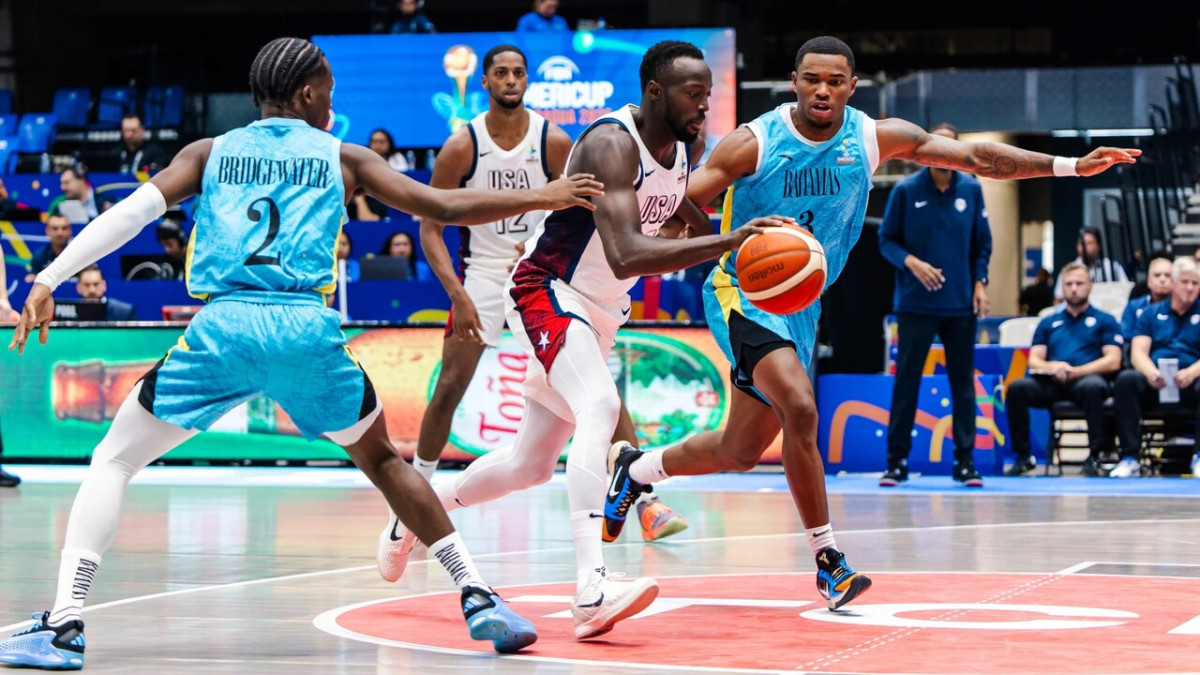 Kā ierasts, "mazāk nozīmīgos turnīros" ar raibu sastāvu spēlējošā ASV lielu daļu no cīņas pret Bahamu Salu basketbolistiem atradās iedzinējos. Trešajā ceturksnī saliniekiem pat 56:47 vadība. Tomēr amerikāņi atguvās, bet pēdējā desmitminūtē paši izsēja +9 (78:69). Papildlaikā ASV padevās ievērojams 21:3 izrāviens, kas izšķīra spēles iznākumu, lielvalstij uzvarot ar 105:93.