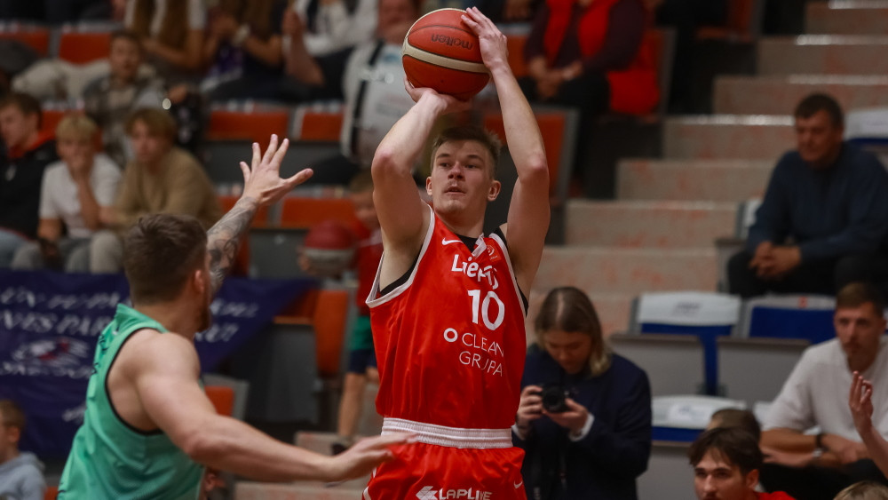 # Otro spēli pēc kārtas ar 29 gūtiem (2p. 4/5, 3p. 5/13, 1p. 6/6) punktiem "Liepājas" rindās izcēlās Zeivjers Dusels. Ar 16 punktiem mājinieku rindās sekoja Edvards Egle.
