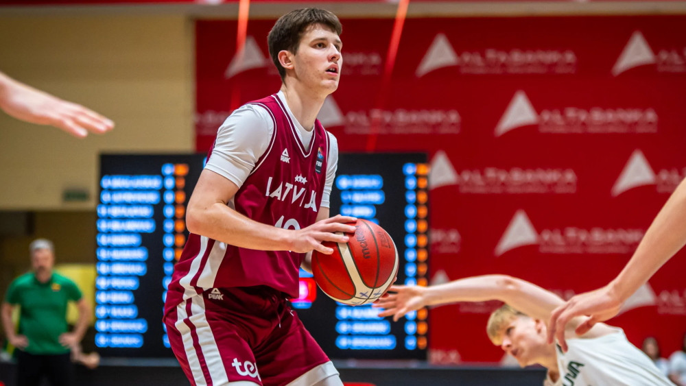 Oto Bergmanis šovasar Latvijas U18 izlasē. Foto: FIBA