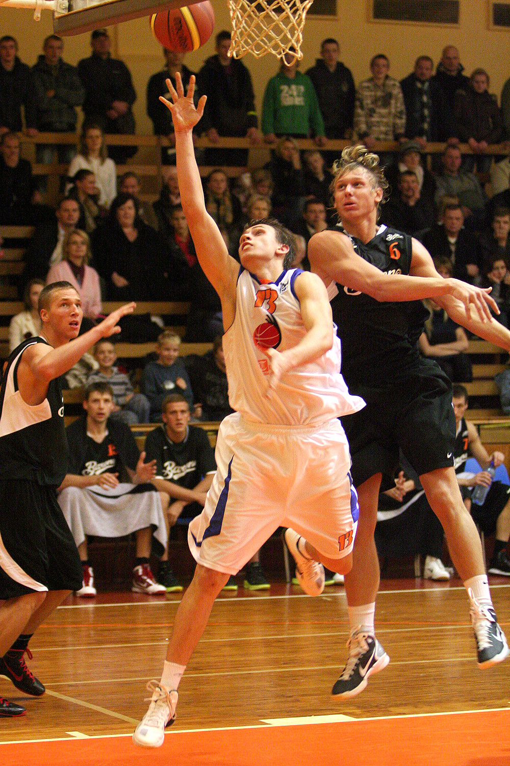 Latvijas Basketbola līgas piektdienas spēlē Iecavas sporta namā "Barons" ar 78:67 uzveica "Turību". LBL mači vairāk nekā desmit gadus nebija notikuši Iecavā. Toreiz savas mājas spēles tur aizvadīja "B-Fans", bet šosezon - "Turību". Abas šīs komandas cīņās ved pieredzējušais treneris Pēteris Višņevičs. Foto: Renārs Buivids |