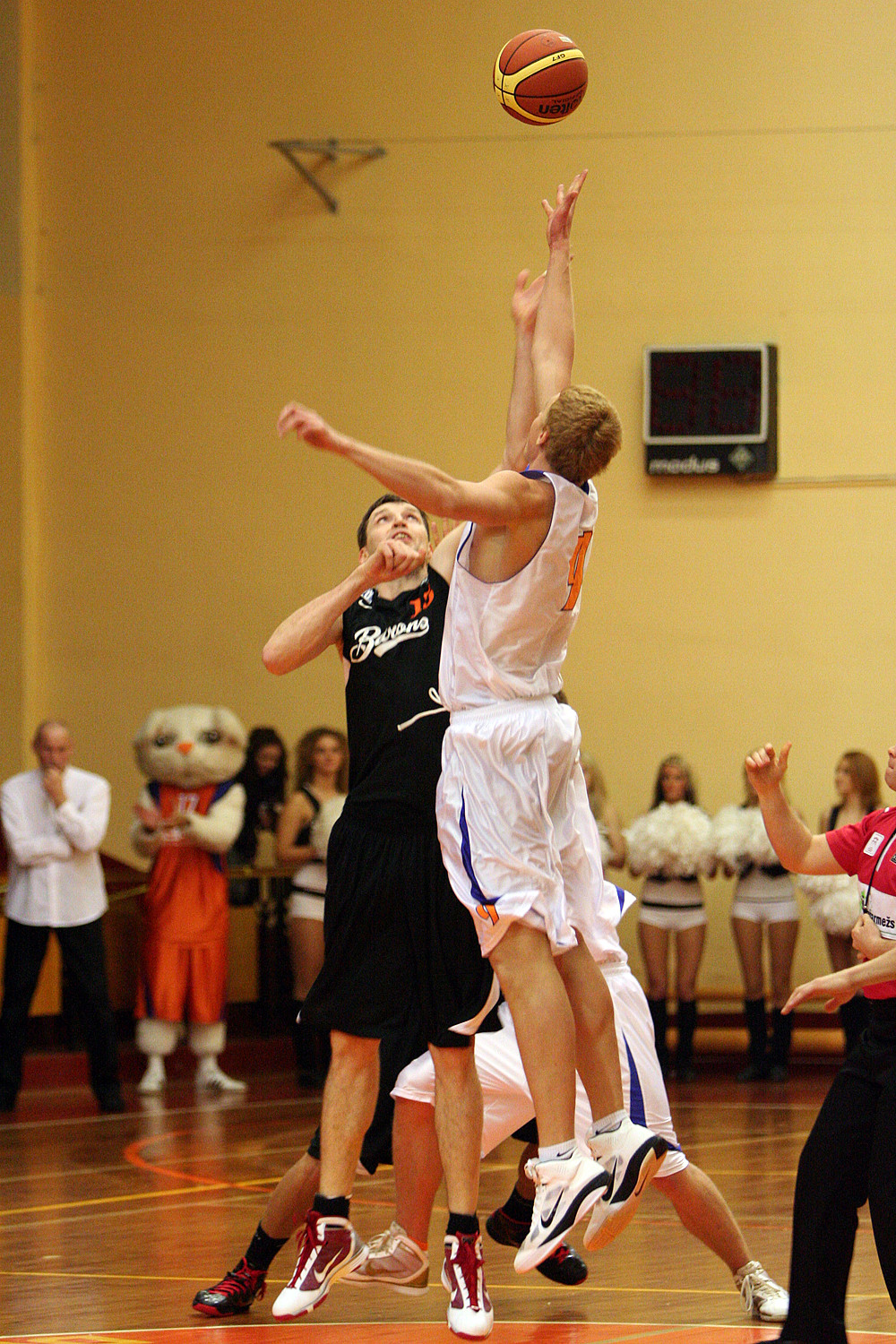 Latvijas Basketbola līgas piektdienas spēlē Iecavas sporta namā "Barons" ar 78:67 uzveica "Turību". LBL mači vairāk nekā desmit gadus nebija notikuši Iecavā. Toreiz savas mājas spēles tur aizvadīja "B-Fans", bet šosezon - "Turību". Abas šīs komandas cīņās ved pieredzējušais treneris Pēteris Višņevičs. Foto: Renārs Buivids |