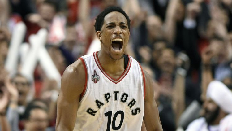 Toronto uzvarā ar 102:99 Derouzans guva 34 punktus, aizvadot pārliecinoši rezultatīvāko spēli šajā sērijā, turklāt beidzot arī trāpot tālmetienu. Iepriekšējās četrās spēlēs viņš izmeta garām visus astoņus tālmetienus. Ar 16 atlēkušajām bumbām un desmit punktiem izcēlās Toronto rezerves centrs Bismaks Bijombo, kamēr lietuvietim Jonam Valančūnam 11 punkti. Indianas sastāvā Džordžam 39 punkti, kā arī astoņas rezultatīvas piespēles.
