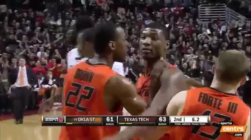 Pagājušās nedēļas nogalē ASV studentu čempionātā NCAA Oklahomas štata universitātes komandas "Cowboys" jaunais basketbolists Markuss Smārts 6,2 sekundes pirms spēles beigām pēc asas vārdu pārmaiņas pagrūda kādu tribīnēs esošo Teksasas tehniskās universitātes komandas "Raiders" līdzjutēju. Par to Smārts nekavējoties saņēma tehnisko piezīmi. Smārts esot norādījis trenerim, ka līdzjutējs izteicis rasistiskas piezīmes. Vēlāk noskaidrojās, ka fans gan apsaukājis Smārtu, taču ne ar rasistiskiem izteicieniem. Smārtam piešķirta trīs spēļu diskvalifikācija, bet līdzjutējs piekritis vairs neapmeklēt nevienu "Raiders" spēli šajā sezonā. 19 gadus vecais Smārts pagājušajā vasarā kļuva par pasaules U19 čempionu ASV izlases rindās, bet šajā sezonā vidēji guvis 17,5 punktus, izcīnījis 5,7 atlēkušās bumbas, atdevis 4,3 rezultatīvas piespēles un pārtvēris 2,3 bumbas, kļūstot par reālu šī gada NBA drafta kandidātu. NBAdraft.net versijā Smārtam atvēlēts ceturtais kārtas numurs.