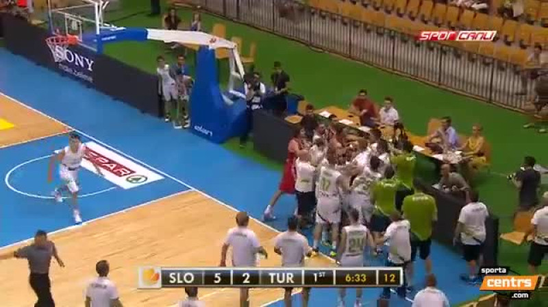 Ar sev neraksturīgu rīcību svētdien izcēlās Slovēnijas izlases saspēles vadītājs Gorans Dragičs, kurš spēles sākumā pēc tam, kad pret viņu tika fiksēta piezīme, noteikumu pārkāpēju Dogusu Balbaju iegrūda mugurā. Balbajs atbildi parādā nepalika, un laukumā sākās grūstīšanās, iesaistoties arī tiem spēlētājiem, kas atradās uz rezervistu soliņiem. Dragičam epizode beidzās ar diskvalificējošo piezīmi.Slovēnija izcīnīja uzvaru mačā ar 72:53.