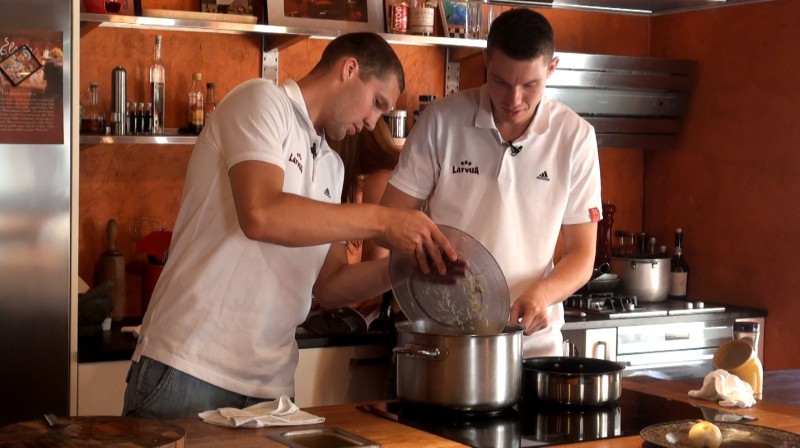 Rubrikā "Sportisti uz pannas" Latvijas izlases kandidāti Dairis Bertāns un Jānis Strēlnieks gatavo savu mīļāko ēdienu - makaronus ar gaļu.Plašāks video materiāls no basketbolistu rosīšanās virtuvē šeit: "Sportisti uz pannas" - Dairis Bertāns un Jānis...