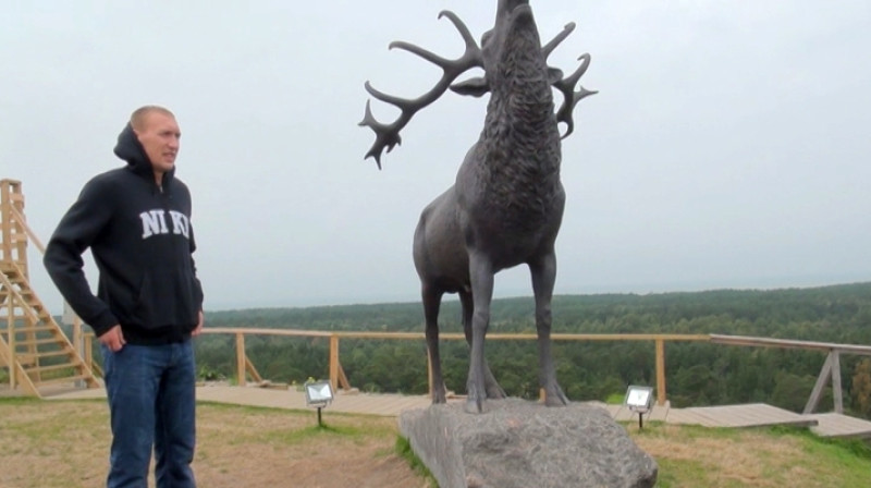 "Ventspils" komandas kapteinis Artūrs Strēlnieks mūs uzvedis Lemberga hūtē jeb Ventspils slēpošanas kalna virsotnē. Sēžot pie brieža, ar Artūru arī aprunājāmies - par kalniem, medībām un paražām.