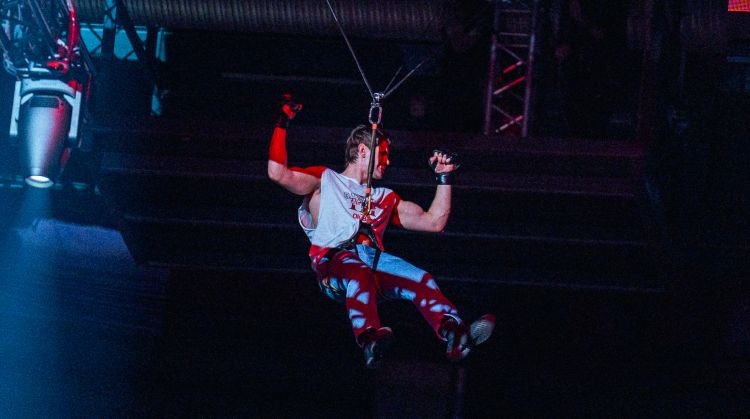 Francis Rozentals zip lining to the cage à la Shawn Michaels WrestleMania 12! Incredible!!