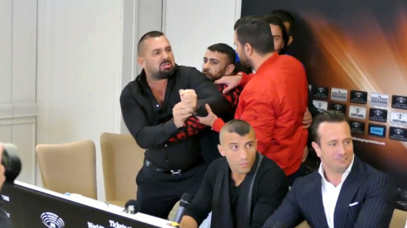 Vācijas pilsētā Štutgartē trešdien notika Pasaules boksa supersērijas preses konference. Turcijas atlēta Avni Jildirima menedžeris sanervozējās un centās noskaidrot attiecības ar pretinieka komandas dalībnieku.Video: GD TV (iespējama nepieklājīga leksika)