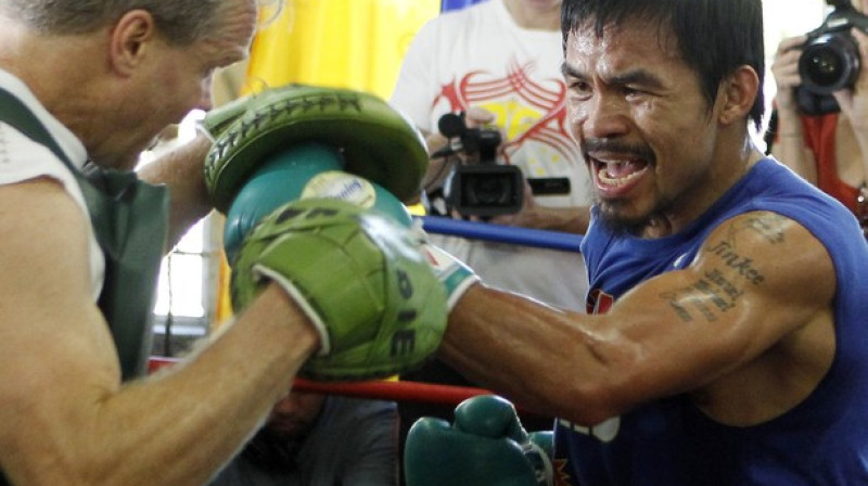 Piedāvājam foto apskatu no filipīniešu boksera Menija Pakjao (51-3-2, 38KO) atklātā treniņa pirms 14. novembrī gaidāmās cīņas par WBC pasaules čempiona titulu svarā līdz 69.9 kg pret meksikāni Antonio Margarito (38-6, 27KO). Foto: Reuters/AP/Scanpix