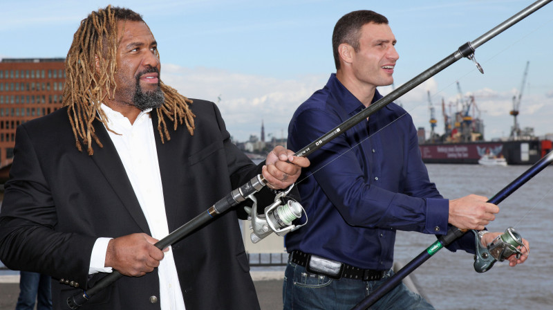 Popularizējot 16. oktobrī gaidāmo cīņu pasaules čempions boksā smagajā svarā WBC versijā Vitālijs Kļičko (Ukraina) un titula pretendents Šenons Brigss (ASV) septembra pirmajā dienā viesojās Vācijas pilsētā Hamburgā, kur pēc pusotra mēneša abi bokseri tiksies ringā. Pozitīvā atmosfērā Kļičko un Brigss paspēja piedalīties ne tikai preses konferencē, bet arī visādi citādi jautri pavadīt laiku. Foto: AP/AFP/Scanpix