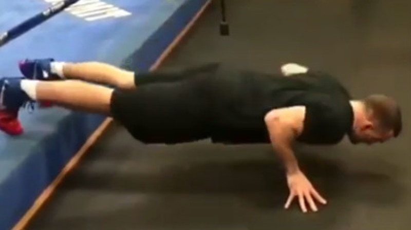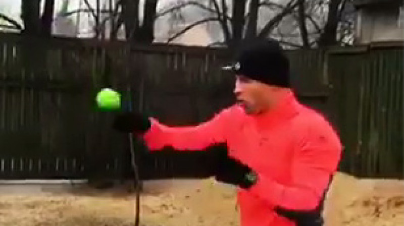 Latvijas labākais bokseris Mairis Briedis publiskojis video, kur cīnās ar bumbiņu, trenējot reakciju un sitiena precizitāti.