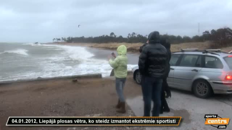 Kamēr 4. janvāri Latviju plosa pirmā 2012. gada vētra, ekstrēmo sporta veidu cienītāji steidz baudīt vēja priekus Liepājas pludmalē.