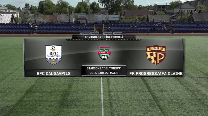 27. maijā "Celtnieka" stadionā Daugavpilī norisinājās kārtējā "komanda.lv" 1. līgas spēle futbolā, kurā sacentās BFC "Daugavpils" un FK "Progress"/AFA "Olaine". Šo maču labāk iesāka mājinieki, vairāk veidojot iespējas, kamēr viesi centās spēlēt vairāk uz pretuzbrukumiem. Otrajā puslaikā "Progress" spēlēja aktīvāk, tomēr mājinieki bija tie, kas atklāja rezultātu, ar lielisku tālšāvienu izcēlās kapteinis Dmitrijs Litvinskis. Viesi metās atspēlēties, un desmit minūtes vēlāl pēc haotiska brīža "Daugavpils" aizsardzībā savu iespēju izmantoja Vugars Askerovs. Mača liktenis tika izšķirts pamatlaika izskaņā, kad viesi izmantoja daugavpiliešu diskusijas ar mača galveno tiesnesi, ātri izspēlēja sānu iemetienu, bumba nonāca pie Aleksa Regžas, un viņš ar spēcīgu tālsitienu izrāva uzvaru savai komandai - 2:1 (0:0; 2:1).