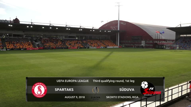Šovakar 19:00 „Skonto” stadionā un „Sportacentrs.com TV” kanāla tiešraidē sacentīsies Latvijas čempionvienība Jūrmalas „Spartaks” un Lietuvas čempione Marijampoles „Sūduva”, aizvadot UEFA Eiropas līgas trešās kvalifikācijas kārtas pirmo spēli.
