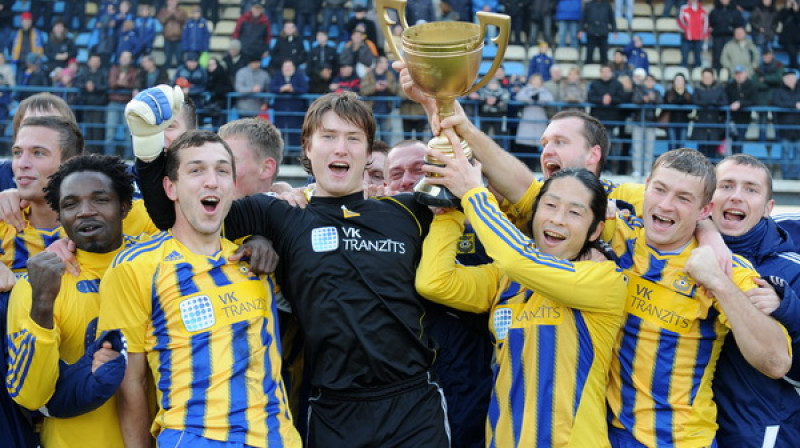 Virslīgas pēdējās kārtas spēlē FK "Ventspils" savā laukumā nospēlēja neizšķirti 0:0 ar "Skonto", tādējādi izcīnot 2011. gada Latvijas čempionu titulu. Foto: Romāns Kokšarovs, Sporta Avīze/F64 Photo Agency.