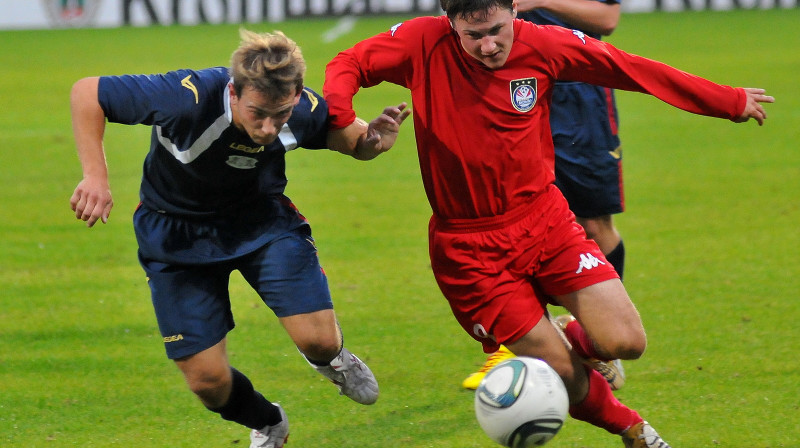"Euro2012" kvalifikācijas turnīrā pirmspēdēja spēlē Latvijas izlase ar 2:0 uzvarēja Maltas valstsvienību. Vārtus guva Aleksejs Višņakovs un Artjoms Rudņevs. Foto: Romāns Kokšarovs, Sporta Avīze/F64 Photo Agency.
