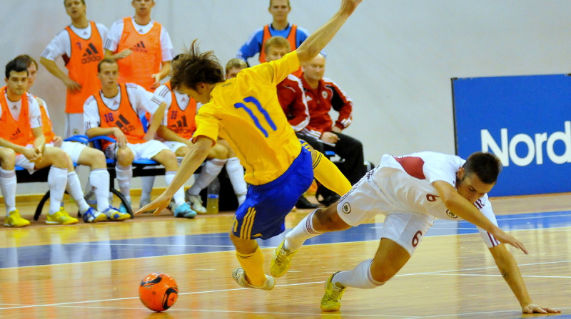Tāpat kā dienu iepriekš, arī pirmdienas vakarā Latvijas telpu futbola valstsvienība pārbaudes spēlē Olimpiskajā Sporta centrā Rīgā piedzīvoja zaudējumu Ukrainas kolēģiem,šoreiz ar rezultātu 0:4.Foto: Romualds Vambuts