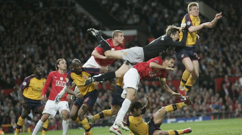 Piedāvājam ieskatu pirmajā UEFA Čempionu līgas pusfināla atbildes spēlē, kurā Mančestras ''United'' viesos pārliecinoši ar 3:1 apspēlēja Londonas ''Arsenal'', divu spēļu summā triumfējot ar 4:1.Foto: AP/AFP